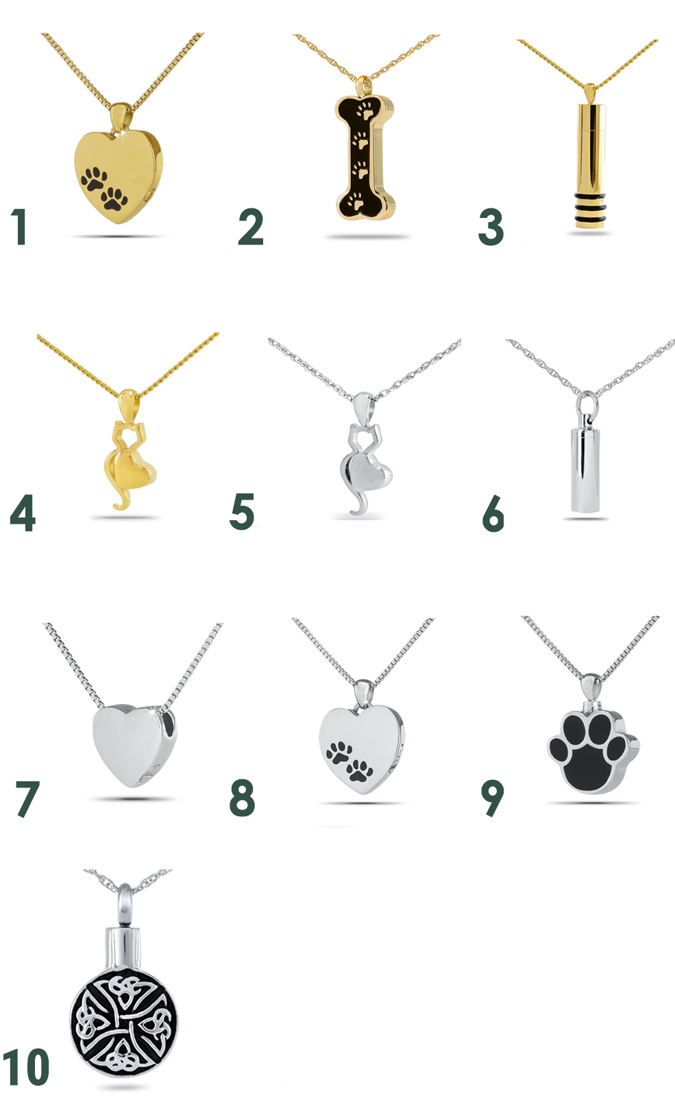 These beautiful stainless steel and gold steel pendants hold a small amount of your beloved pets cremains within, so they'll always be close to your heart wherever you may be. We permanently seal the opening to ensure no cremains are lost while wearing. Be sure to check our Facebook as we are always adding new necklaces to our inventory.