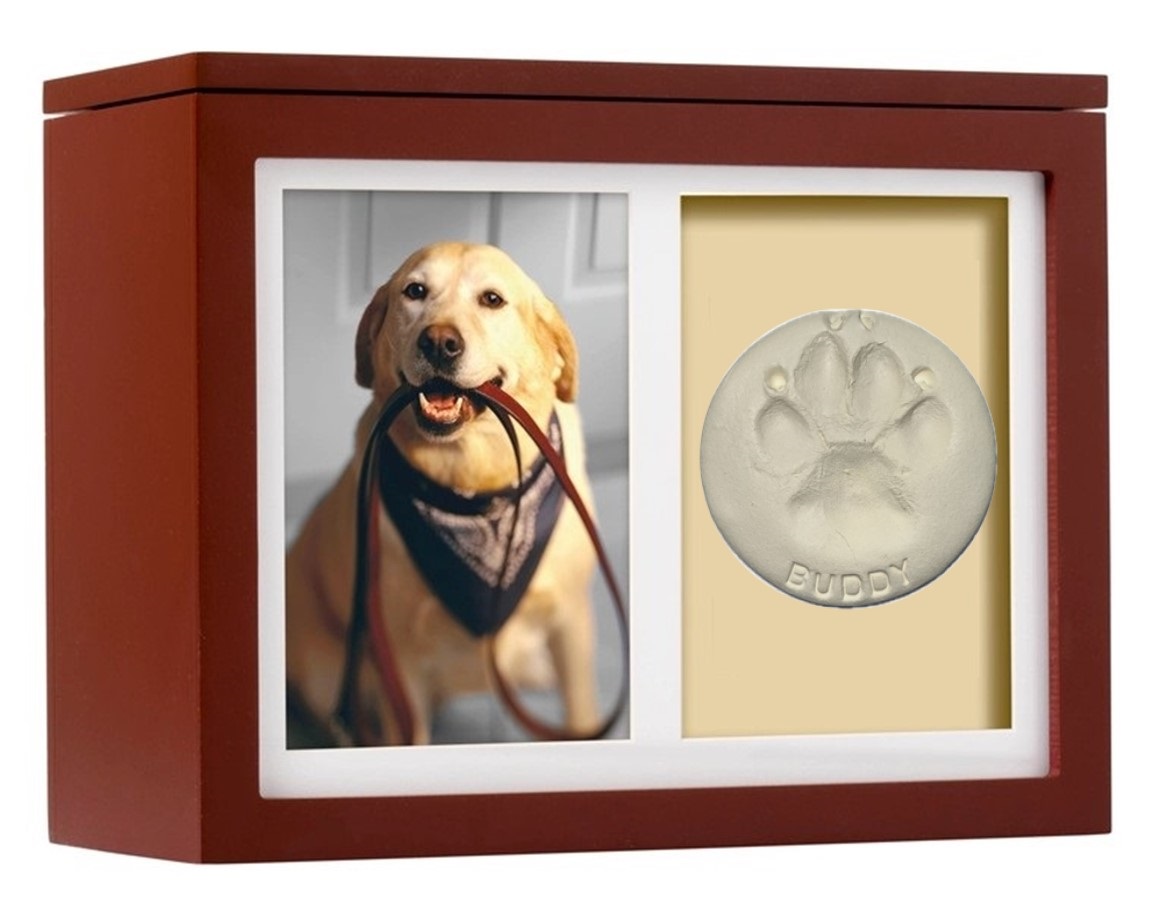 Memory Box - Wood Photo Urn - Wooden Urn - Brass Paw Print Urn - Brass Paw Print Urn with Raku Finish - Brass Paw Print Jar - Paw Print Jar - Raku Finish - Keepsake Urns - Steel Vase Urns - Economy Urns - Keepsake Necklaces